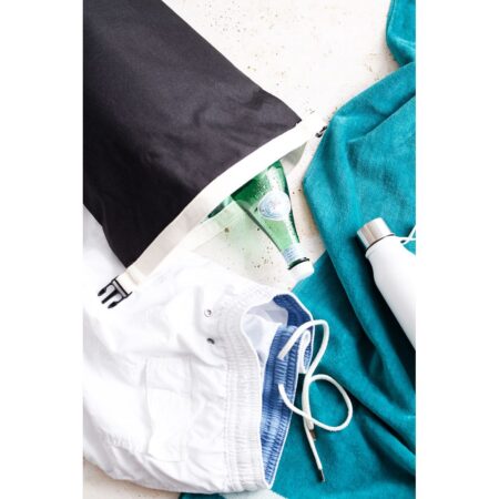 Laukkua on kätevä kantaa puuvillaisen olkahihnan ansiosta. Sisäosa kestää hyvin kosteuden.