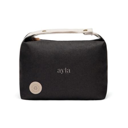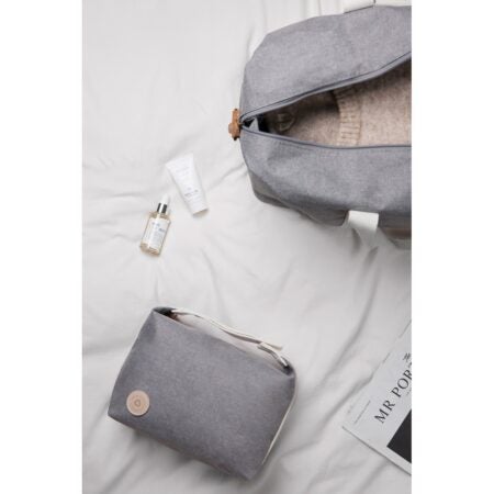 RCS-sertioidusta, kierrätetystä polyesteristä valmistetussa toilettilaukussa on kontrastiyksityiskohtia, ja siinä yhdistyvät käytännöllisyys ja hienostunut muotoilu.