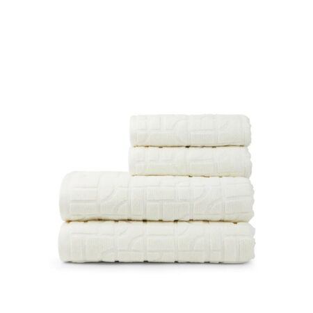 Hillitty geometrinen kuvio tuo ripauksen eleganssia kylpyhuoneen sisustukseen, ja luomupuuvilla tarjoaa laadun tuntua mukavuudesta tinkimättä.