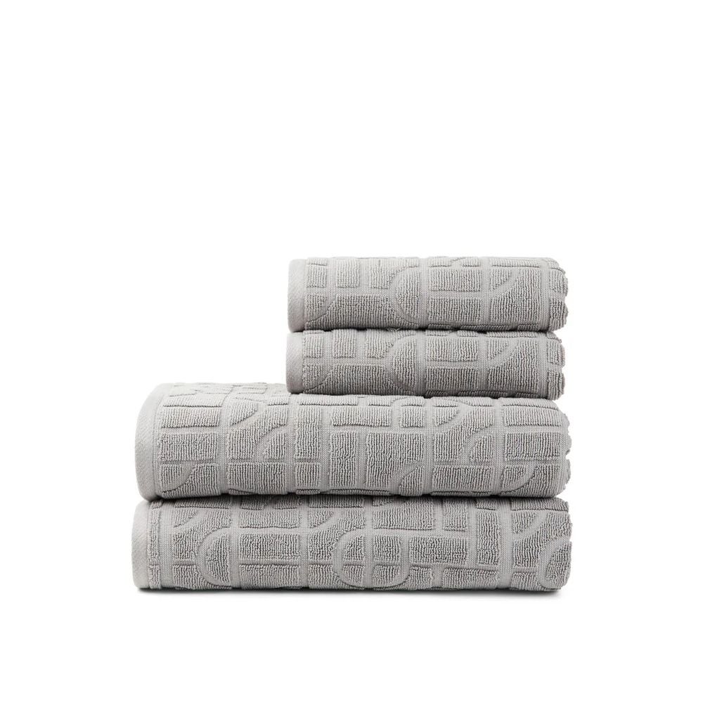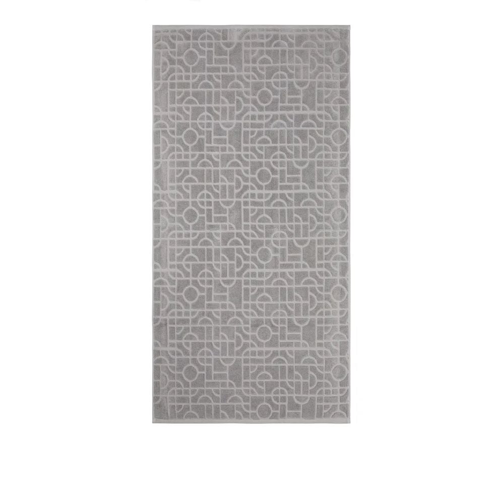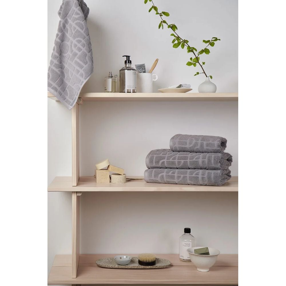 Hillitty geometrinen kuvio tuo ripauksen eleganssia kylpyhuoneen sisustukseen, ja luomupuuvilla tarjoaa laadun tuntua mukavuudesta tinkimättä.