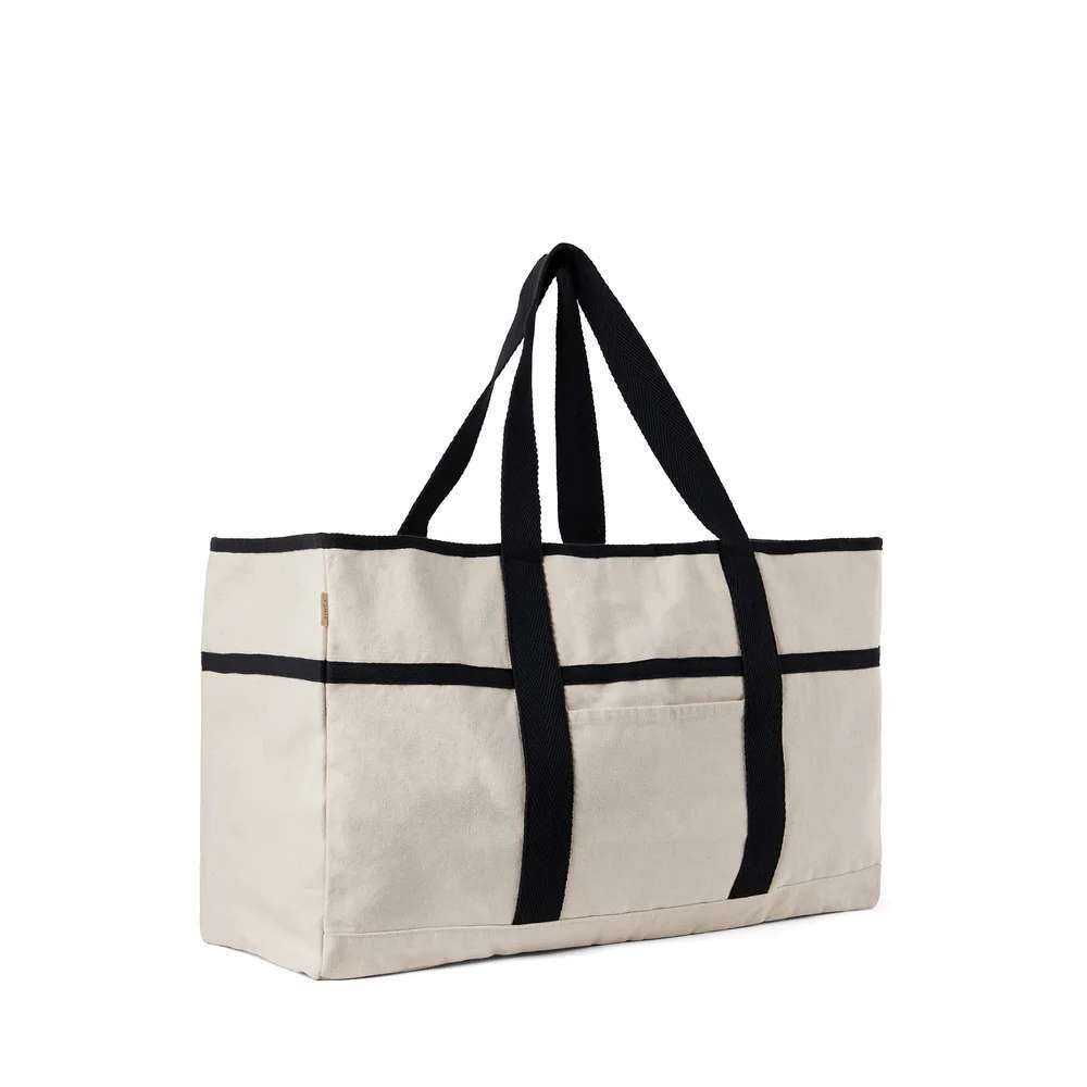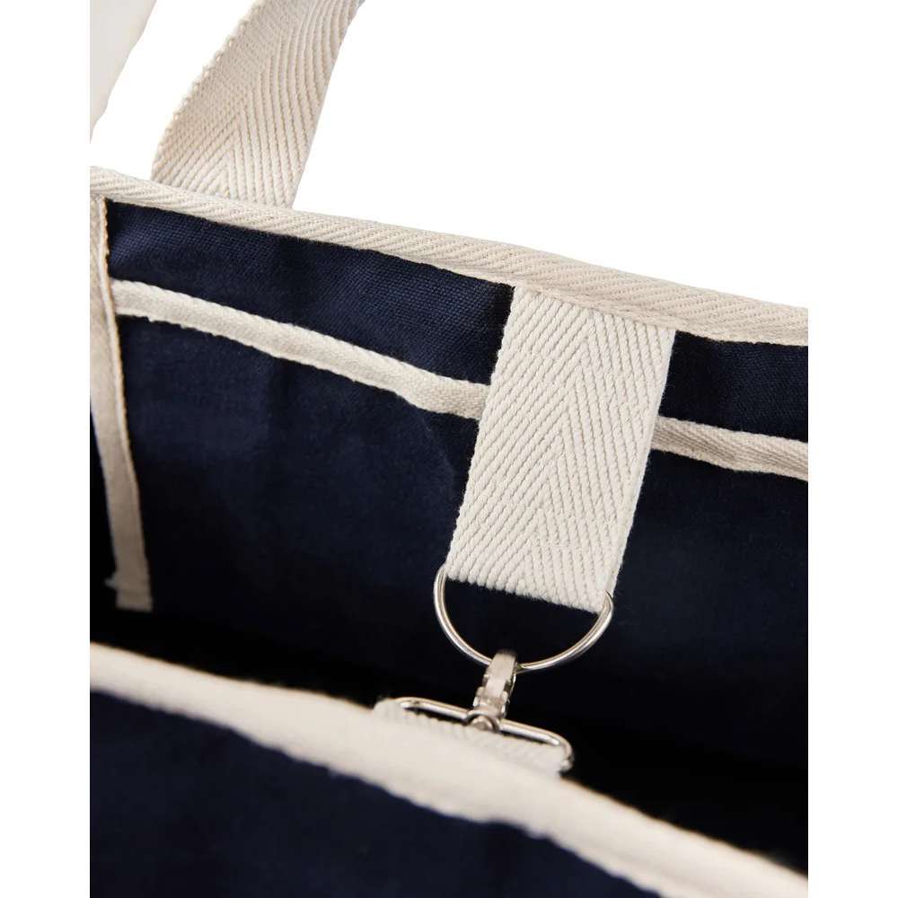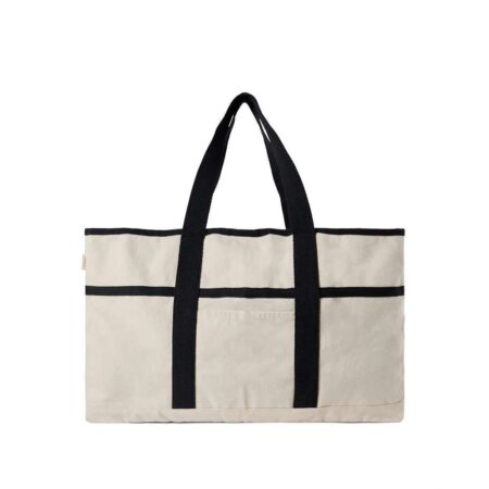 Tämä laukku on valmistettu 70 % kierrätyspuuvillasta ja 30 % kierrätyspolyesteristä, mikä vahvistaa sitoutumistamme vastuullisiin hankintoihin.